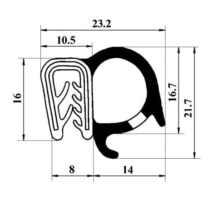 Ущільнювач отвору передньої двері ЗАЗ-1102, 1103, ГАЗ-53 ТАВРІЯ СЛАВУТА 1102-6107018, 4301-6107126